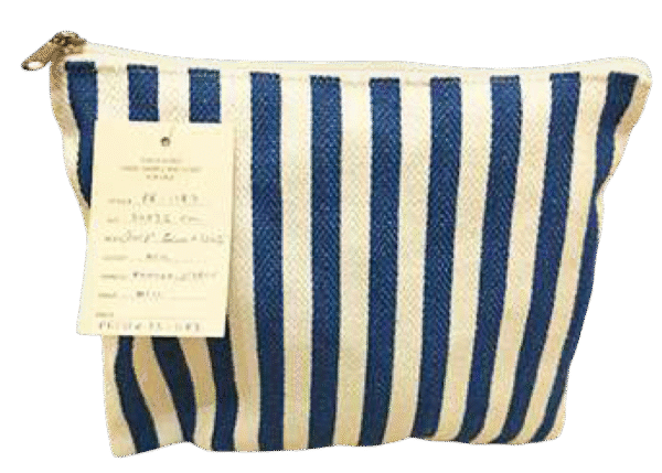 Size: 20 x 26 cm Body: Blue + White Stripe Gusset: No Handle: Runner & Zipper Print: NA