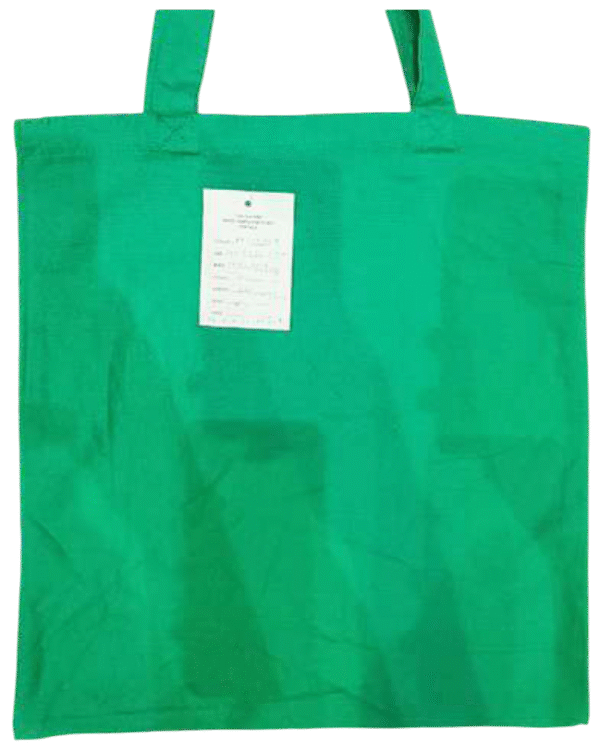 Size: 40.5 x 35.5 cm Body: 10 oz dyed canvas Gusset: Nil Handle: Self, W X W 58 cm Print: Nil