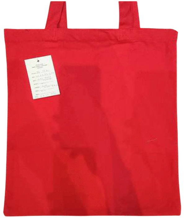 Size: 40.5 x 35.5 cm Body: 10 oz dyed canvas Gusset: Nil Handle: Self, W X W 58 cm Print: Nil