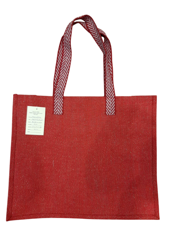 Size:- 38 X 46 X 15 cm Body:- Red Lurex Gusset:- Do Handle:- Flat Tape Print:- Nil